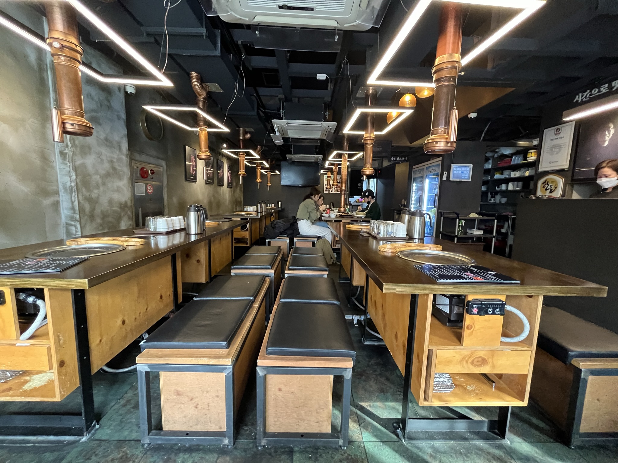 큼직한 테이블이 안까지 쭉 이어져 있어